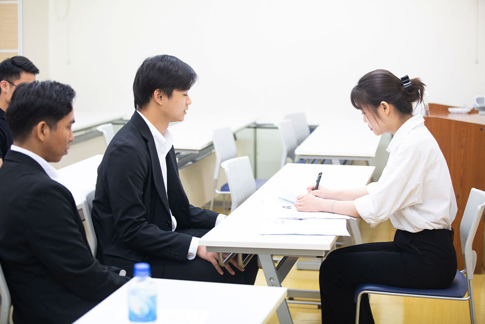 海外での日本語学校では日本本部と連携し、外国人人材が日本企業へ就職する活動を支援しています。企業探しや人材とのマッチング、面接の準備だけでなく、外国人人材が日本で就労するためのビザ取得などの手続きを代行します。また、その待ち時間にも、日本語のレベルアップ研修を行い、文化や習慣の理解を深めます。
